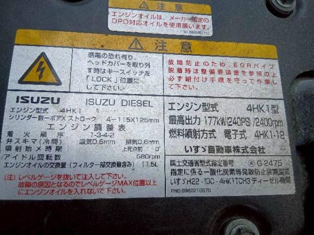 エンジン型式 4HK1 エンジン馬力 ━ エンジン形状 L4 排気量 5,190cc 過給機 〇 燃料 軽油 走行距離 540,000km ミッション情報