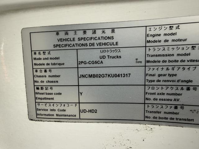 メーカー UDトラックス 地域 兵庫県神戸市西区 通称車名 クオン クラス 大型 年式 2019(H31/R1)年 運転免許 ━ 車両型式 2PG-CG5CA 車台番号 -***317 NOx・PM規制 適合 車検 令和08年05月23日 リサイクル預託 ━ リサイクル預託金 14,260円 エンジン情報