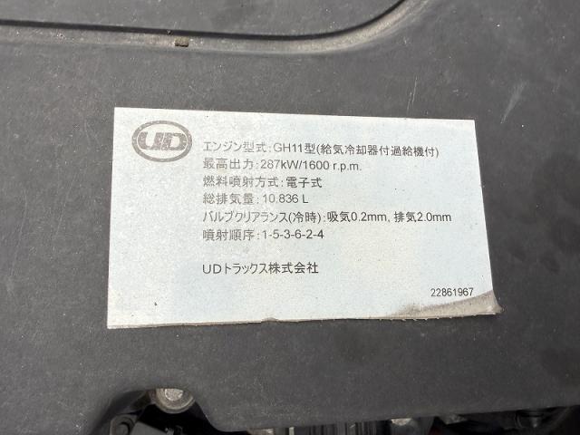 エンジン型式 GH11 エンジン馬力 ━ エンジン形状 ━ 排気量 10,830cc 過給機 ━ 燃料 軽油 走行距離 743,000km ミッション情報