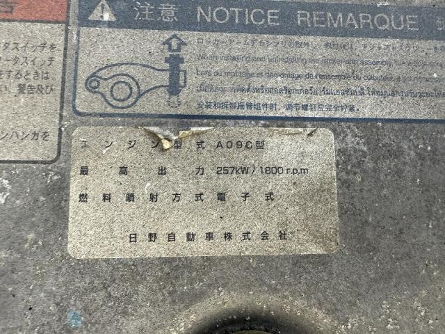 エンジン型式 A09C エンジン馬力 ━ エンジン形状 ━ 排気量 8,860cc 過給機 ━ 燃料 軽油 走行距離 1,078,000km ミッション情報