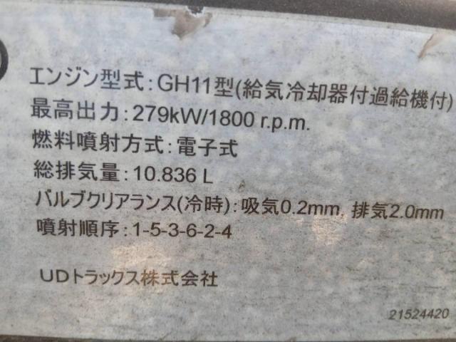 エンジン型式 GH11 エンジン馬力 ━ エンジン形状 ━ 排気量 10,830cc 過給機 ━ 燃料 軽油 走行距離 692,000km ミッション情報