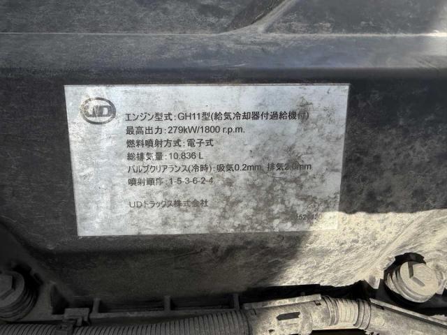 エンジン型式 GH11 エンジン馬力 380ps (279kw) エンジン形状 ━ 排気量 10,830cc 過給機 ━ 燃料 軽油 走行距離 97,000km ミッション情報