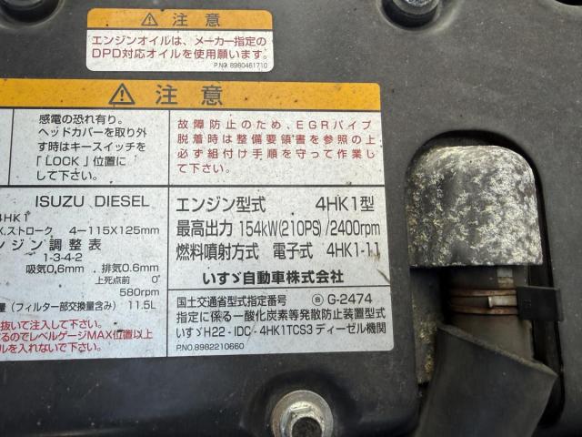 エンジン型式 4HK1 エンジン馬力 210ps (154kw) エンジン形状 L4 排気量 5,190cc 過給機 〇 燃料 軽油 走行距離 150,000km メーター交換 ミッション情報