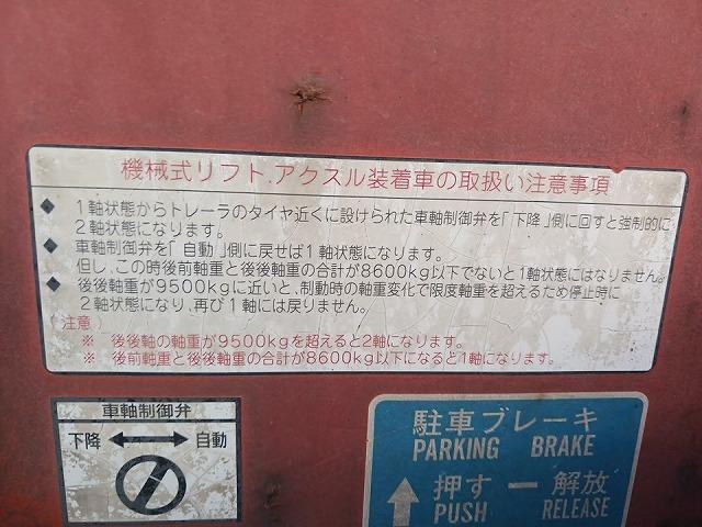 車体の形状 ━ 平成18年01月 ━ ━ 事業用 セミトレーラ 車名 乗車定員 最大積載量 車両重量 車両総重量 国産車その他 ━ 15,900kg 7,840kg 23,740kg 車台番号 長さ 幅 高さ 前前軸重 前後軸重 後前軸重 後後軸重 群[46]62群-*** 899cm 249cm 342cm ━ ━ ━ ━ 車両型式 エンジン型式 排気量 燃料 型式指定番号 類別区分番号 -PFT229AB ━ ━ ━ ━ ━ 所有者の氏名又は名称 *** 所有者の住所 *** 使用者の氏名又は名称 *** 使用者の住所 *** 使用の本拠の位置 *** 有効期限の満了する日 抹消 備考