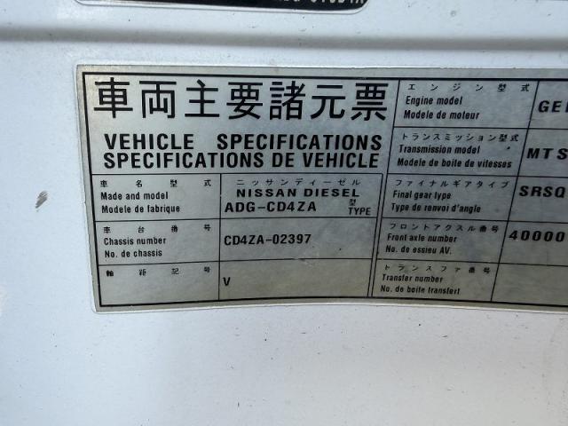 メーカー UDトラックス 地域 兵庫県神戸市西区平野町 通称車名 クオン クラス 大型 年式 2006(H18)年 運転免許 ━ 車両型式 ADG-CD4ZA 車台番号 CD4ZA-***397 NOx・PM規制 適合 車検 令和08年10月12日 リサイクル預託 R済別 リサイクル預託金 14,360円 エンジン情報