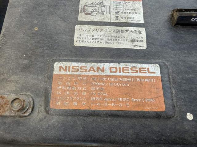 エンジン型式 GE13 エンジン馬力 ━ エンジン形状 ━ 排気量 13,070cc 過給機 ━ 燃料 軽油 走行距離 921,000km ミッション情報