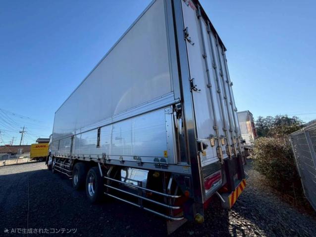 ボディ形状 冷凍ウィング ボディメーカー 菱重コールドチェーン,山田車体工業 ボディ仕様 ━ ボディ架装 冷蔵冷凍機,箱 最大積載量 12,800kg ボディ内寸法 L-956cm W-240cm H-263cm キャビン・装備情報