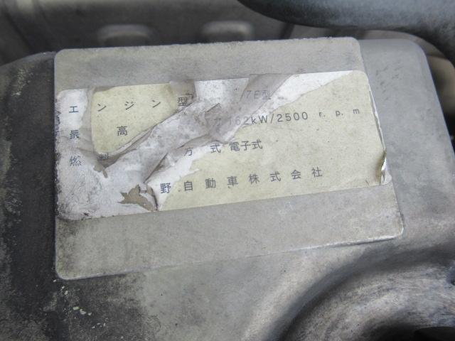 エンジン型式 J07E エンジン馬力 220ps (162kw) エンジン形状 L5 排気量 6,400cc 過給機 〇 燃料 軽油 走行距離 526,000km ミッション情報