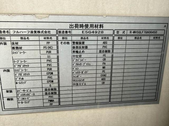 ボディ形状 冷凍バン ボディメーカー 日本フルハーフ ボディ仕様 ━ ボディ架装 ━ 最大積載量 4,700kg ボディ内寸法 L-625cm W-212cm H-230cm キャビン・装備情報
