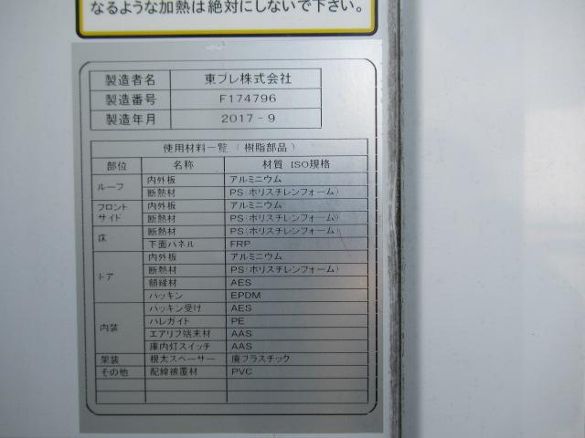 車体の形状 ━ 平成29年09月 普通 特種 事業用 冷蔵冷凍車 車名 乗車定員 最大積載量 車両重量 車両総重量 日野 2人 2,450kg 5,430kg 7,990kg 車台番号 長さ 幅 高さ 前前軸重 前後軸重 後前軸重 後後軸重 FC9JKA-***852 868cm 249cm 322cm 2,150kg ━ ━ 3,280kg 車両型式 エンジン型式 排気量 燃料 型式指定番号 類別区分番号 TKG-FC9JKAG J05E 5.12L 軽油 ━ ━ 所有者の氏名又は名称 *** 所有者の住所 *** 使用者の氏名又は名称 *** 使用者の住所 *** 使用の本拠の位置 *** 有効期限の満了する日 抹消 備考