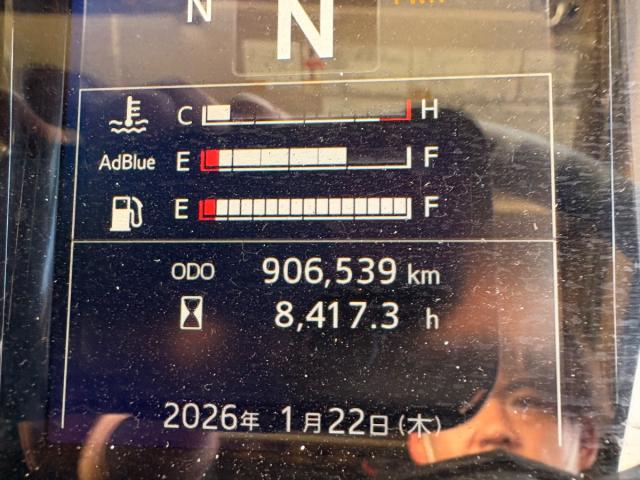 エンジン型式 A09C-K1 エンジン馬力 ━ エンジン形状 L6 排気量 8,860cc 過給機 〇 燃料 軽油 走行距離 907,000km ミッション情報