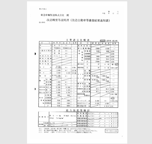 車体の形状 ━ 平成10年08月 普通 貨物 ━ セミトレーラ 車名 乗車定員 最大積載量 車両重量 車両総重量 国産車その他 ━ 21,300kg 6,690kg 27,990kg 車台番号 長さ 幅 高さ 前前軸重 前後軸重 後前軸重 後後軸重 TF28H8C21-***022 1,248cm 249cm 314cm ━ ━ ━ ━ 車両型式 エンジン型式 排気量 燃料 型式指定番号 類別区分番号 -TF28H8C21改 ━ ━ ━ ━ ━ 所有者の氏名又は名称 *** 所有者の住所 *** 使用者の氏名又は名称 *** 使用者の住所 *** 使用の本拠の位置 *** 有効期限の満了する日 抹消 備考